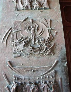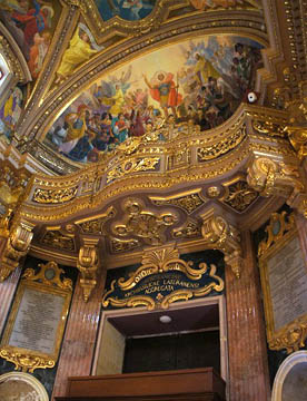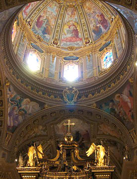 主祭壇に向かって天井を見ると普通にドーム状に見えますが横に回ってみるとだまし絵だということがよく分かります。