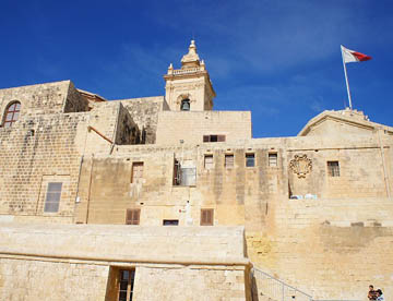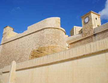 ゴゾ島の中心の町であるヴィクトリアにそびえるチタデル。階段を上がって行くと大聖堂があり、そのまわりの城壁に沿って歩けます。