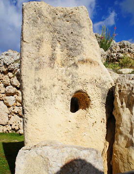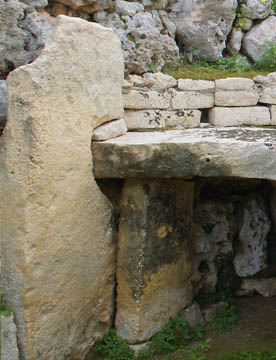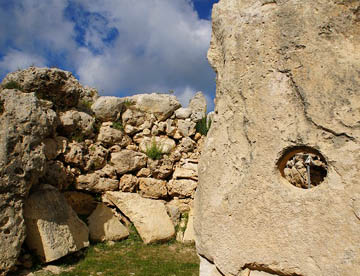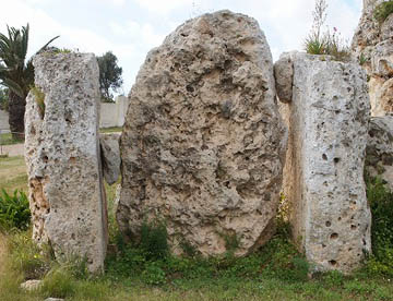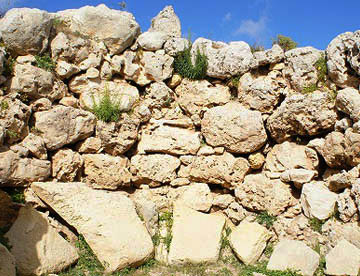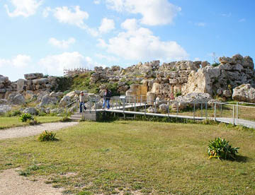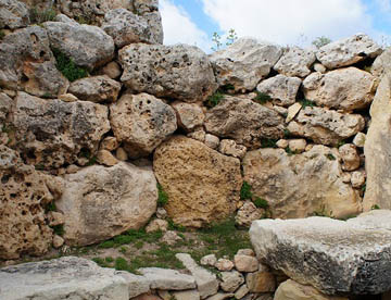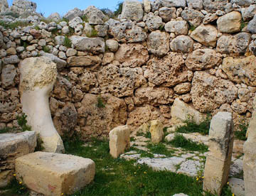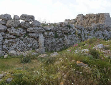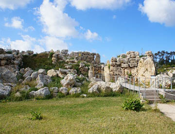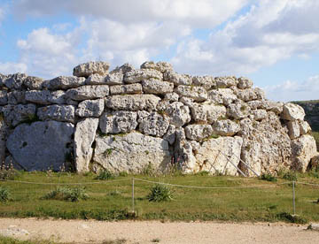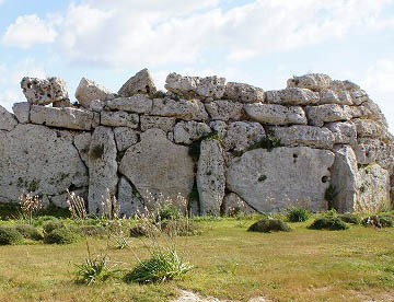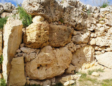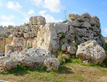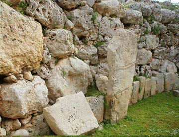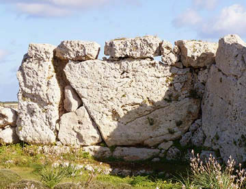 2つの神殿を外壁が取り囲むというマルタの遺跡に共通する形をしていて、幅は40m、奥行き23m、最大高さ8mで、最大の石は重さは50トンとか。