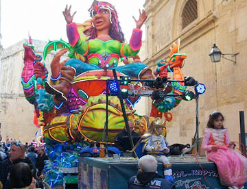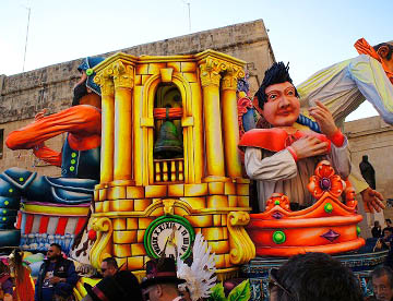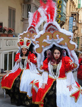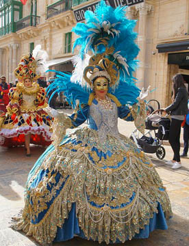 カーニバルと聞くと派手な格好でダンスしながら練り歩くパレードのイメージですが、その起源はイエス・キリストが伝道をはじめる前に40日間荒野で断食と瞑想を行ったことにならい、キリスト教徒が節制の日々を送る、四旬節の直前に行われる宗教行事です。人口の9割以上が敬虔なカトリック教徒であるマルタでは1年のうちで一番盛大な宗教的行事です。