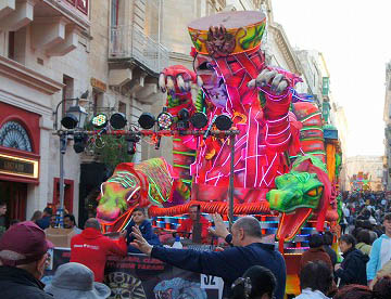 マルタのカーニバルはヨハネ騎士団がマルタ島の領有権を獲得した数年後の1535年にはじめて開催されてから6世紀にわたって続いているイベントですが、特に盛大なのがヴァレッタ、フロリアーナ地区で行われるカーニバルです。