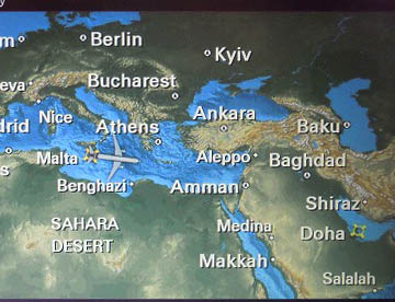 往路とほぼ同じルートを逆行するように飛行して約5時間半の22時30分ドーハ・ハマド国際空港に到着。