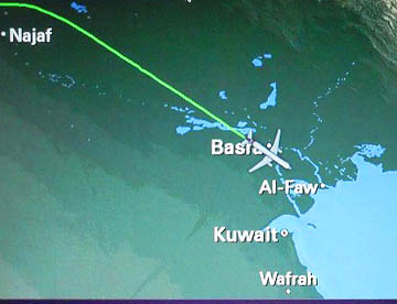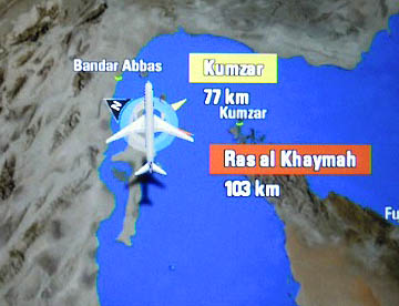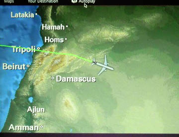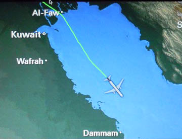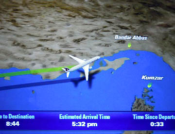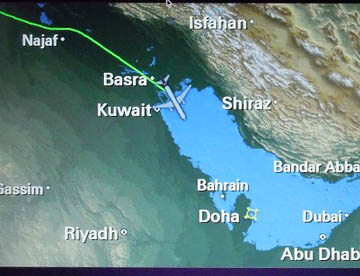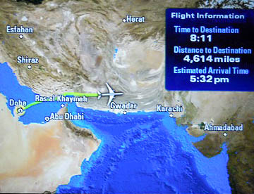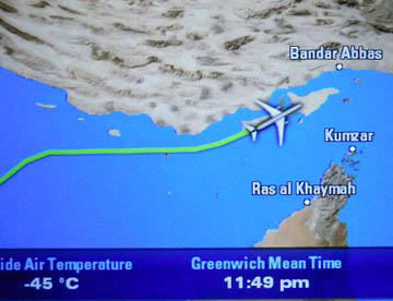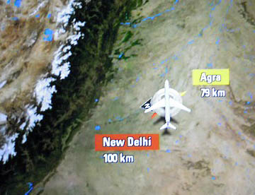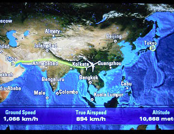 帰路は往路の飛行ルートとは違って、ドーハからほぼ東に向かいインド北部を飛行しニューデリーからタイ北部を経て中国南部を通り上海上空辺りで昼食。