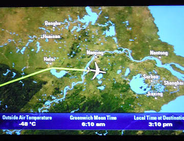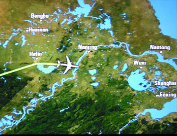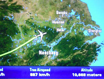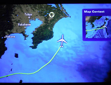上海からは九州、四国の上空を通過して太平洋に出て約10時間に飛行で17時30分に成田国際空港に無事到着。