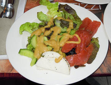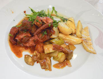 ウサギ肉のトマトソースの煮込み料理を食べましたが、すごく骨っぽくて食べにくい感じでした。