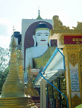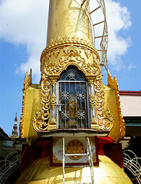 15世紀の建造とされていますが、現在の姿は、パゴダ建立500年を記念して1975年に修復された、とても大きな4面の仏像です。それぞれが異なる仏像とのことですが、時間の関係で4面すべてをカメラに納めることは出来ませんでした。