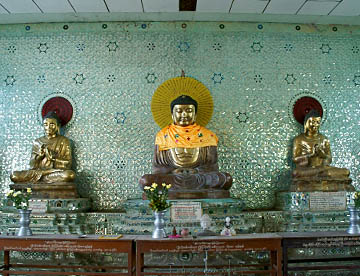 中に入るとすぐ目の前に現われるチャウッタージーパコダの大きな寝釈迦仏に圧倒されます。