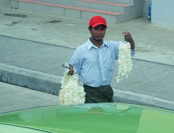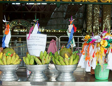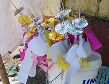 靴を脱いで歩くとすぐにお供え物が売られています。