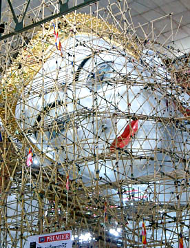 顔には豪華絢爛な髪飾り、眉間には宝石による装飾、整えられた眉毛、白い肌、青いアイシャドー、鼻筋の通った立派な鼻、鮮やかな赤色の唇等を足場越しに見ることが出来ます。