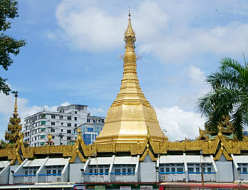 カラフルでモダンなビルの多いスーレーパゴダ通り、ダウンタウンのど真ん中のローターリー状の交差点の中にあるパゴダです。