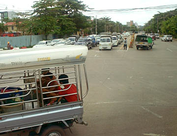 古都バゴーの観光を終えてバスにてヤンゴンへ。ヤンゴンまでは約100kmほどです。