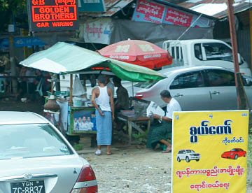 有名ディスコ・エンペラーもあるシュエダゴンパゴダ通り。中華料理店等漢字の看板が並んでいます。