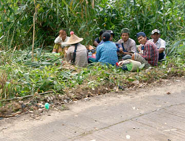 また、小型トラックも荷台に椅子を組んで近距離の路線バスとして使われていて、こちらは後ろから乗り降りする。