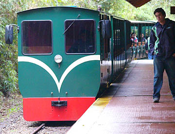 ボートを降りて、滝の脇につけられた階段を時折水しぶきを浴びながら昨日歩いた遊歩道まで登り、トロッコ列車の駅で濡れた着衣を着替える。