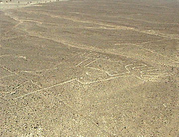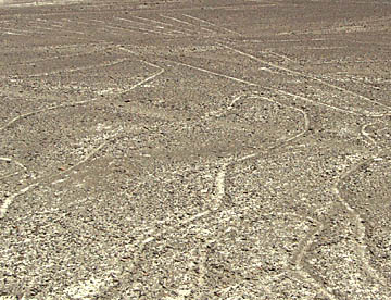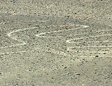 石がごろごろした砂漠に描かれた地上絵は「線=絵」の部分が人が踏み固めたような感じで、掘られたように少し低くなっている。