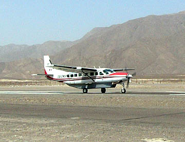 10時に「ナスカ」に到着。昨日予定していた地上絵を見るフライトが砂嵐のために今日になってしまったとのことで、我々のフライトはその後との連絡があり、先に展望台に上がって近くの地上絵を見る。
