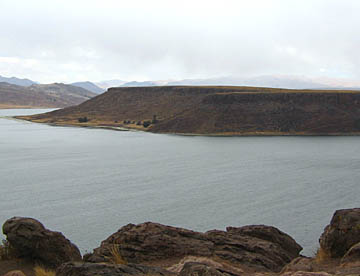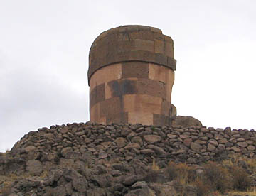 なおもバスは走り、「ウマヨ湖」を見下ろす高台に位置する標高3900mの「シルスタニ遺跡」で下車、観光。