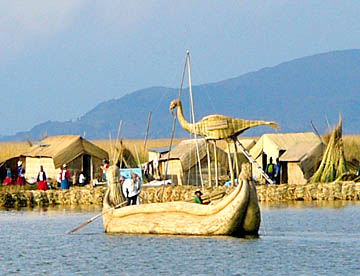 ホテルすぐ下の桟橋から船に乗り「ウロス島」へ向かう。