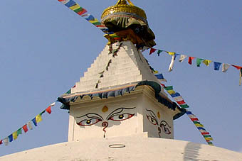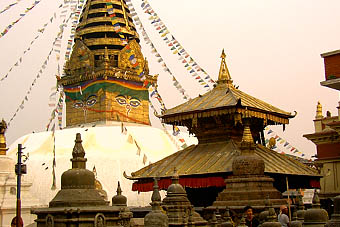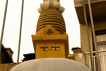 カトマンズを紹介する冊子などには必ず登場する壁面に大きな目玉が描かれた「目玉寺」の方がわかりやすい。