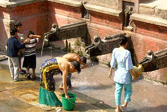 そんな中を、ヴィシュヌティ川のほとりでバスを降りて歩いてダルバール広場へ。
