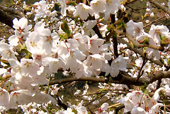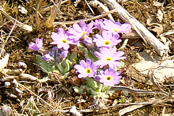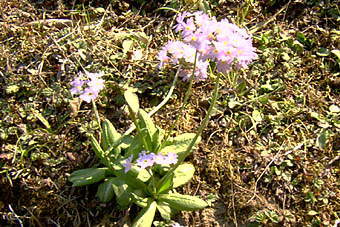 足元に咲くサクラソウ、周囲の山肌には石楠花、桜も咲いていました。