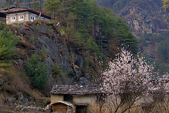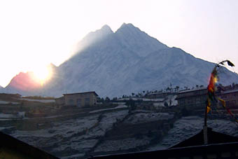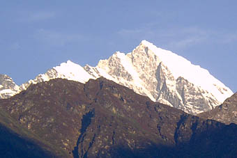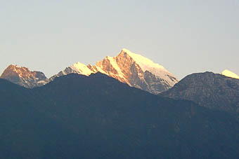 バクディンは谷間の村だが手前の山々の奥には雪で覆われた6,000メートル級の山が見られ、山の中に入ってきたことを実感させられる。
