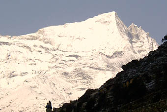 目の前にはクンビラ(5761メートル)が聳えている。