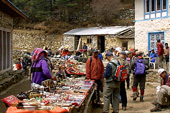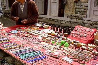 サナサのロッジ前にはチベットの民芸品を売る露天が何軒も出ていた。