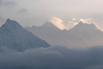 夕映えのエベレストを期待して待ったが、だんだんと雲が出てきて残念。一日中見えていたタムセリクも雲に隠されてしまった。