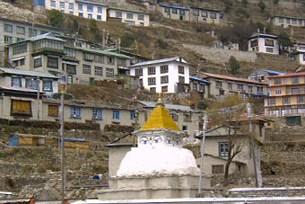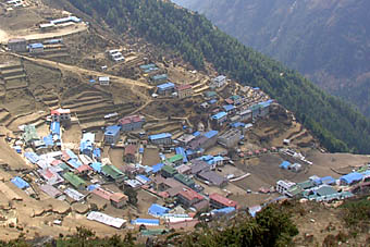 途中からは雲が懸かって来て山々の姿も見えなくなり、何度か休みながらナムチェ・バザール到着は16時15分。