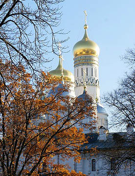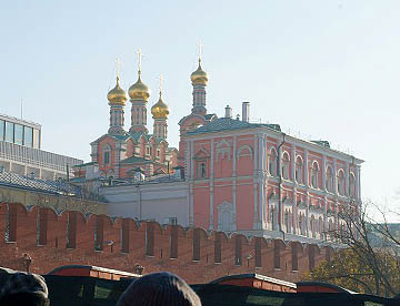 クレムリン大宮殿の東に隣接する瀟洒な聖堂。現在丸屋根は9個だが、建立当初は1個だった(直ぐに3個に増やされた)。皇帝、皇后の私的な参拝、礼拝所として使用された。
