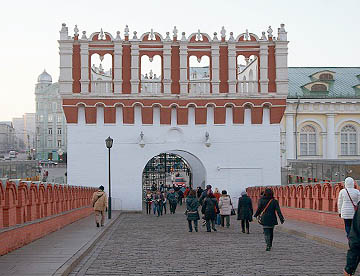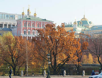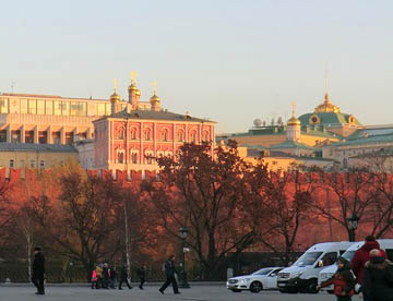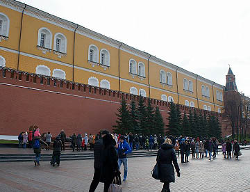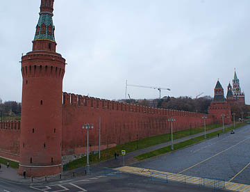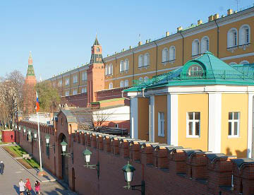 クレムリンと言うこの言葉の表記はあくまでも英語やフランス語のもので、直接のロシア語で言うと実際は『クレムリ』となるそうです。クレムリは「城壁」を意味する言葉で、この言葉通りクレムリンは建物全体が大きな城壁で囲われた造りになっています。クレムリンの城壁の総延長は2.25Km。総面積は約26ヘクタール。