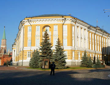 帝政ロシア時代は、元老院。ソビエト時代には閣僚会議館。赤の広場に面し、二等辺三角形の平面を持つ。赤の広場から、レーニン廟越しに見ると、カザコフ館のドームが見える。レーニン以来、歴代のソ連指導者の執務室が置かれた。