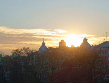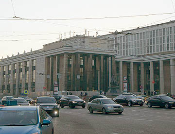 ソビエト時代にはソ連最高会議幹部会館。ソ連時代の1932年から1934年にかけて建造された。大統領官邸などの周囲の建物と同じ黄色の外観で調和が取れている。
