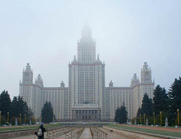 空港からモスクワ市内を一望にできる高台にあるモスクワ大学へと向かう。だがこの日はあまり天気が良くなくて少しもやっとしていて綺麗な景色は見れなかった。