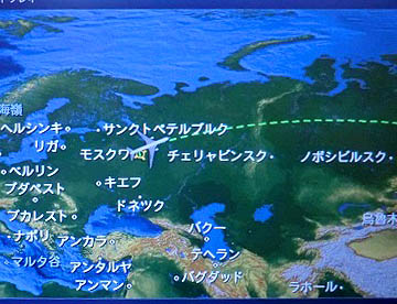 モスクワに市内観光を終えて空港に向かい、17時00分発のJAL442便にて成田に向けてモスクワ・ドモジェドボ空港を離陸。