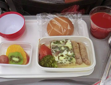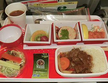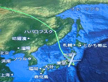 新潟県上空に差し掛かる頃に朝食が出て8時35分成田に到着。