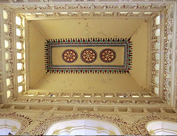 真っ白で太い柱が並ぶ回廊や、奥にある博物館として使用されている部屋の彫刻など、見どころはたくさんあります。部屋毎に異なる天井も見事です。