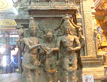 ミーナークシーは女神です。シバ神の奥さまです。南インドで敬愛されているこの土地の土着の神で「魚の目を持つ女神」と言われています。