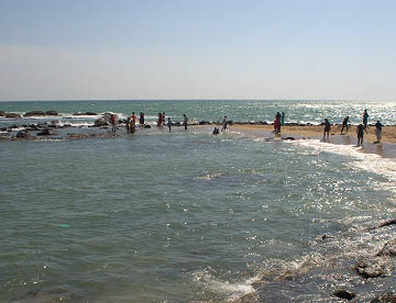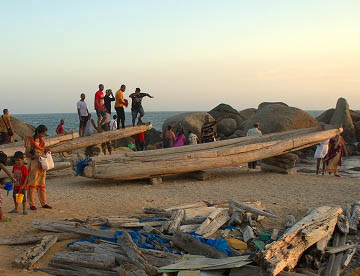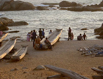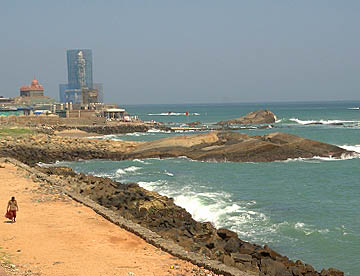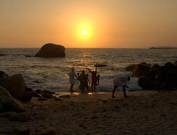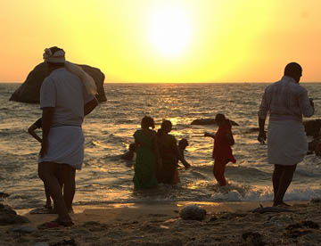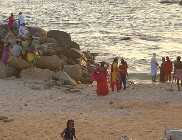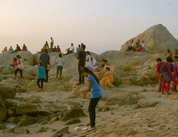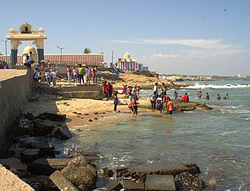 インド亜大陸が海に落ち込む先はガート(沐浴場)になっていて沐浴する人や海水浴を楽しむ人々でかなりの混雑です。