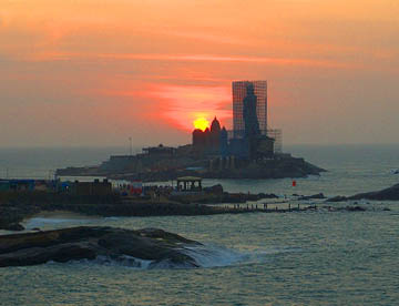 タミルナドゥ州の町カニャークマリのインド半島最南端の岬に位置し、町の名の由来となった女神クマリを祀る寺院です。