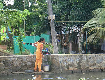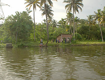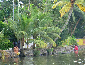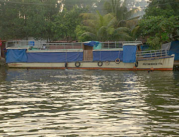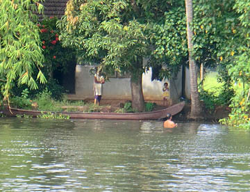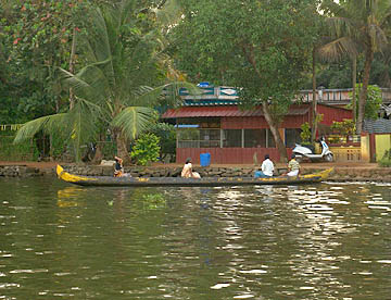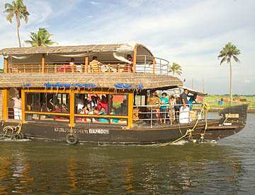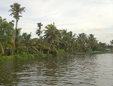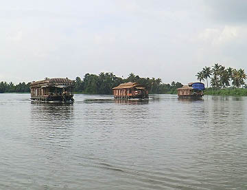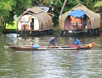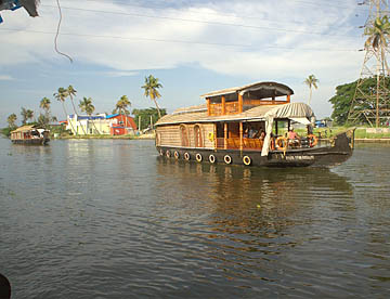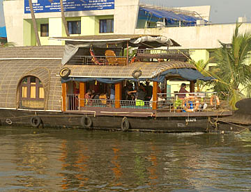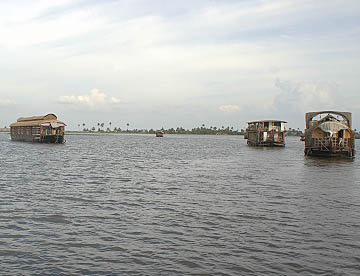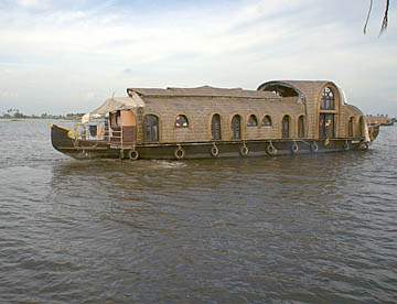 ケララ州の海岸線、特にコーチンの南側には、無数の川と入江が複雑なデルタ地帯が広がっています。この地域を「バックウォーター」(水郷地帯)と呼ぶのですが、ここから貸し切りハウスボートで一泊二日の船の旅。
