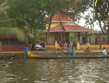乗船が終わったハウスボートは、ゆっくりと港を出港し、北へ向かって水路を航行していきます。“椰子の木の州”ケララならではの風景を眺めながら。