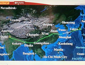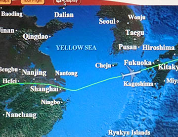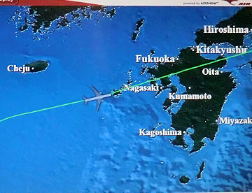 午前7時、日本の領空に入り長崎上空に差し掛かるころに朝食。