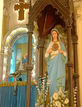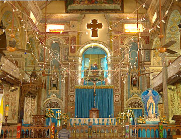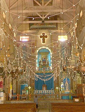 だが中に入ってみると明るくカラフルに装飾された主祭壇に驚かされます。