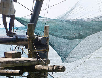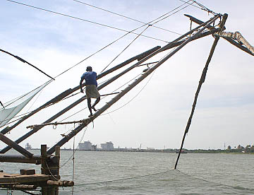 中国人の鄭和によって紹介されたのでチャイニーズ・フィッシング・ネットと言われている、コーチンでのみ見ることができる数百年前から続けられている伝統的な漁法です。
