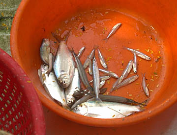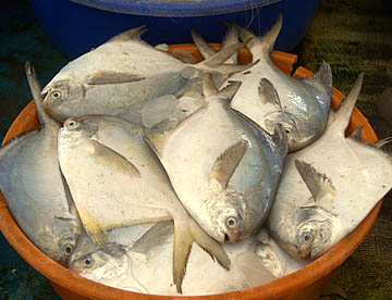 フォート・コーチンの海沿いにたくさん並んでいて、その前では、釣った魚が売られています。近くにはシーフードレストランが幾つかあり、買い求めた魚も料理してもらえます。