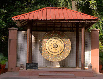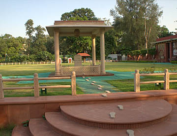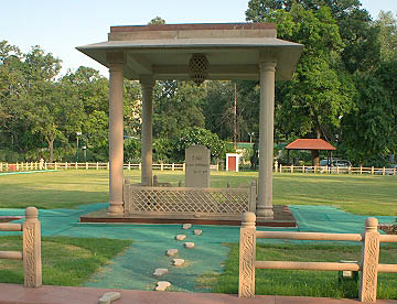 そこが暗殺された場所で、灯火がともっており、最後の言葉「Hei Ram おお神よ」と刻まれたメモリアルの石碑が建っています。