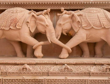 寺院の外壁には数えられないほどのゾウの石像やインド史の重要な人物や神々の像で飾られていて、ヒンズー教の文化的遺産や高い精神性を人々に伝えています。