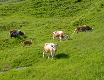 グリンデルワルト駅を出発し眼下には緑の丘に点在する可愛らしい家並や、大きなカウベルを付けた牛などご覧頂きながらクライネシャイデック駅へ。